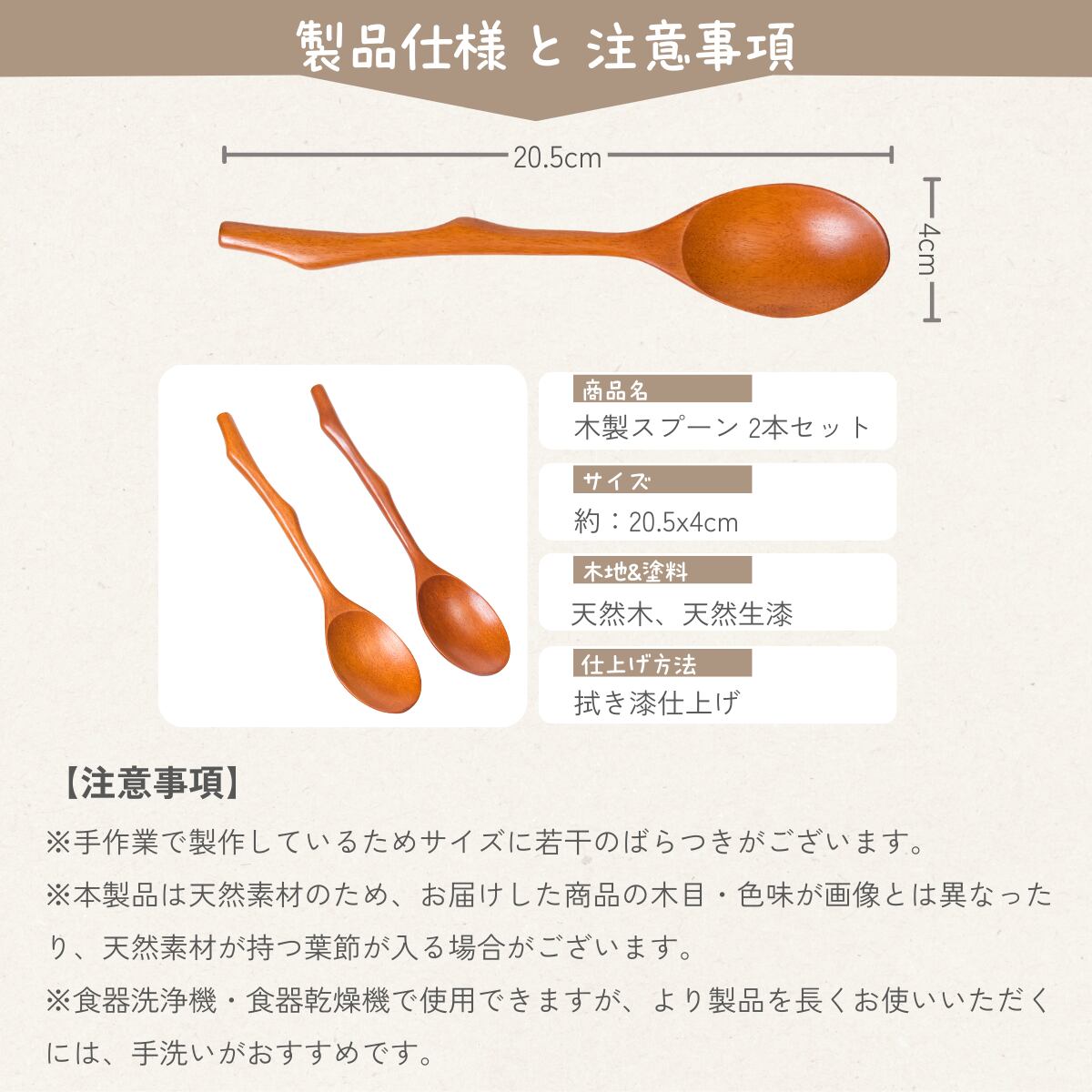 [徳成] 木のスプーン 木製漆塗りスープスプーン 軽量 20.5cm 小枝型 2本セット TAA-201 [食品衛生法適合品]