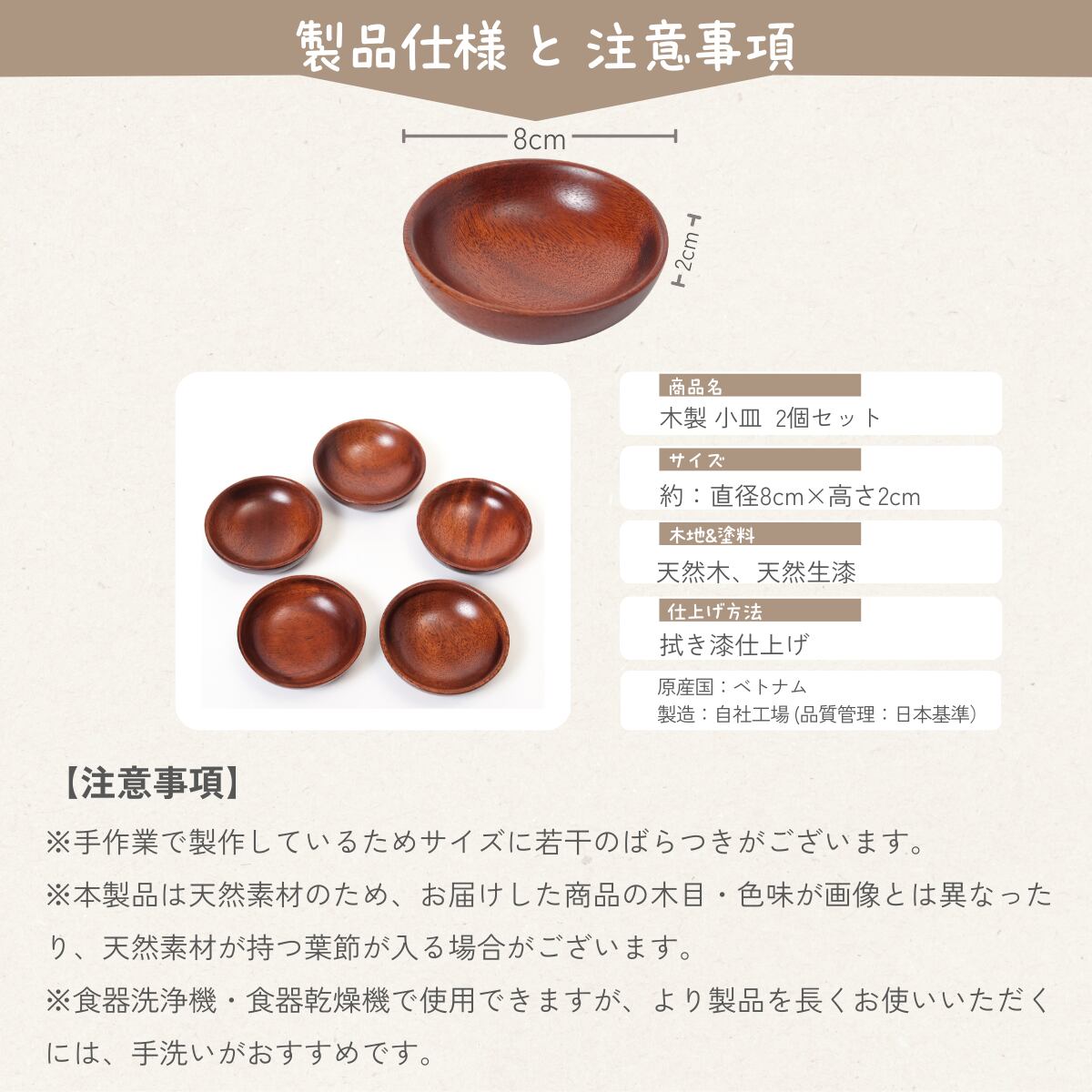 【※注意事項】 ●手作業で製作しているためサイズに若干のばらつきがございます。 ●本製品は天然素材のため、お届けした商品の木目・色味が画像とは異なったり、天然素材が持つ葉節が入る場合がございます。 ●天然木は元来水分を保湿しております。そのため、どの商品でもご購入先の土地環境や商品設置の場所等で木材に動きが生じる事がございます。その旨予めご了承ください。
