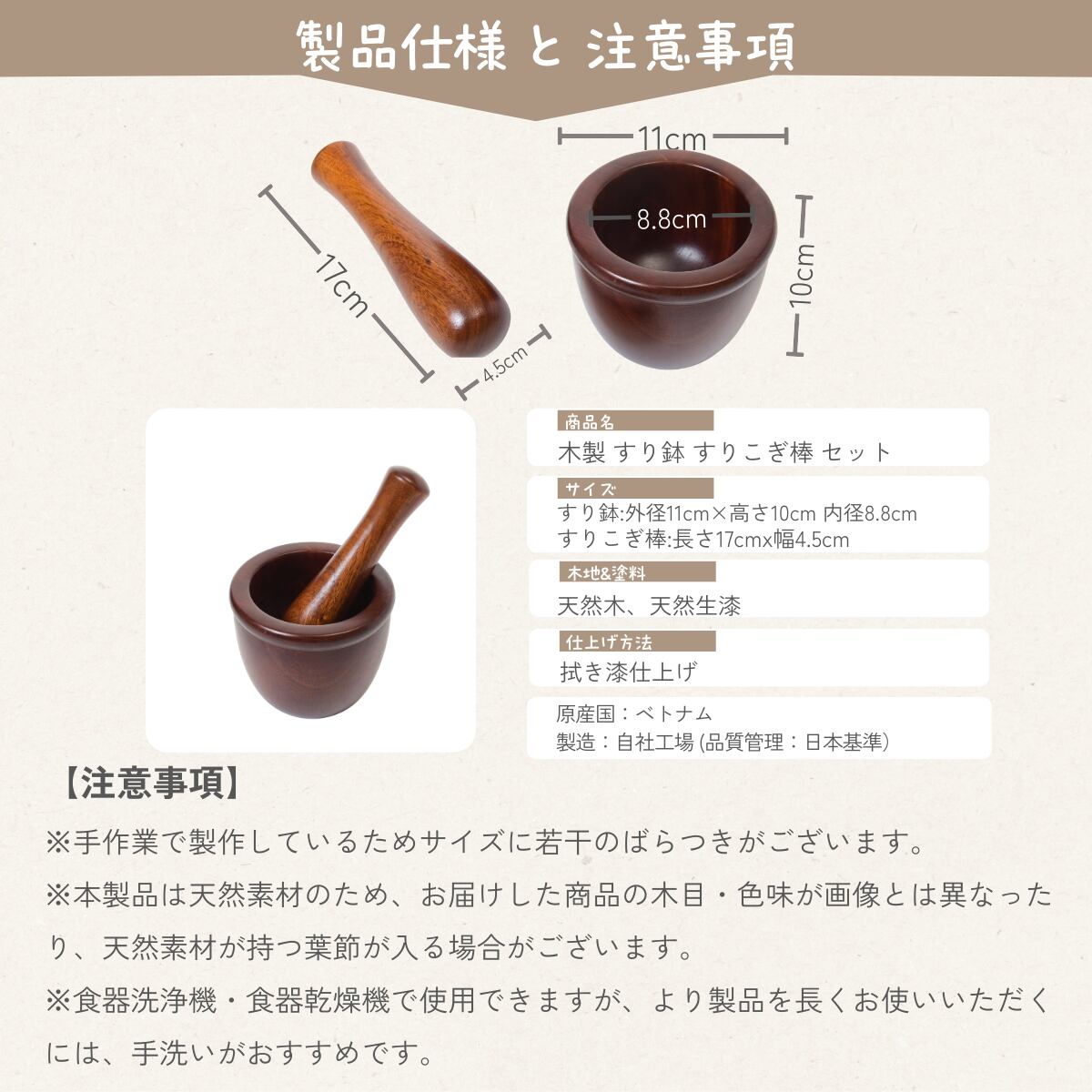 [徳成] すり鉢 すりこぎ棒セット 木製漆塗り スリ鉢 すりこ木 セット 直径11x高さ10cm 家庭用 ギフト 調理器具 TAL-101 [食品衛生法適合品]