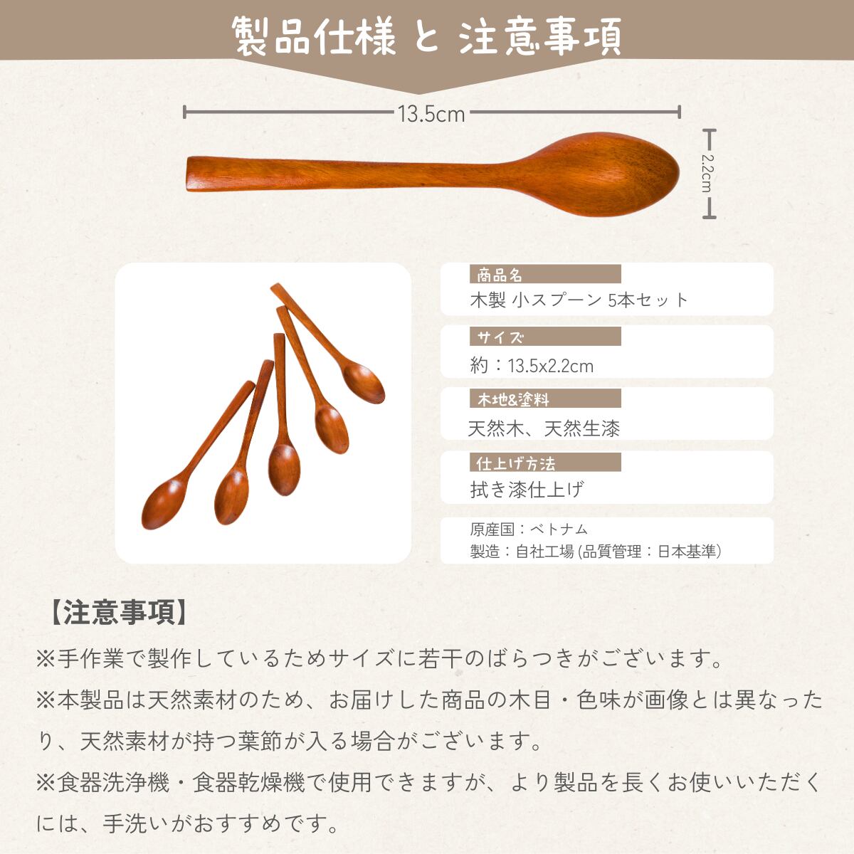 [徳成] 小スプーン 木製漆塗り 13.5cm 5本セット /ティー・コーヒー・ヨーグルト・アイス・デザート用スプーン TAC-501 [食品衛生法適合品]