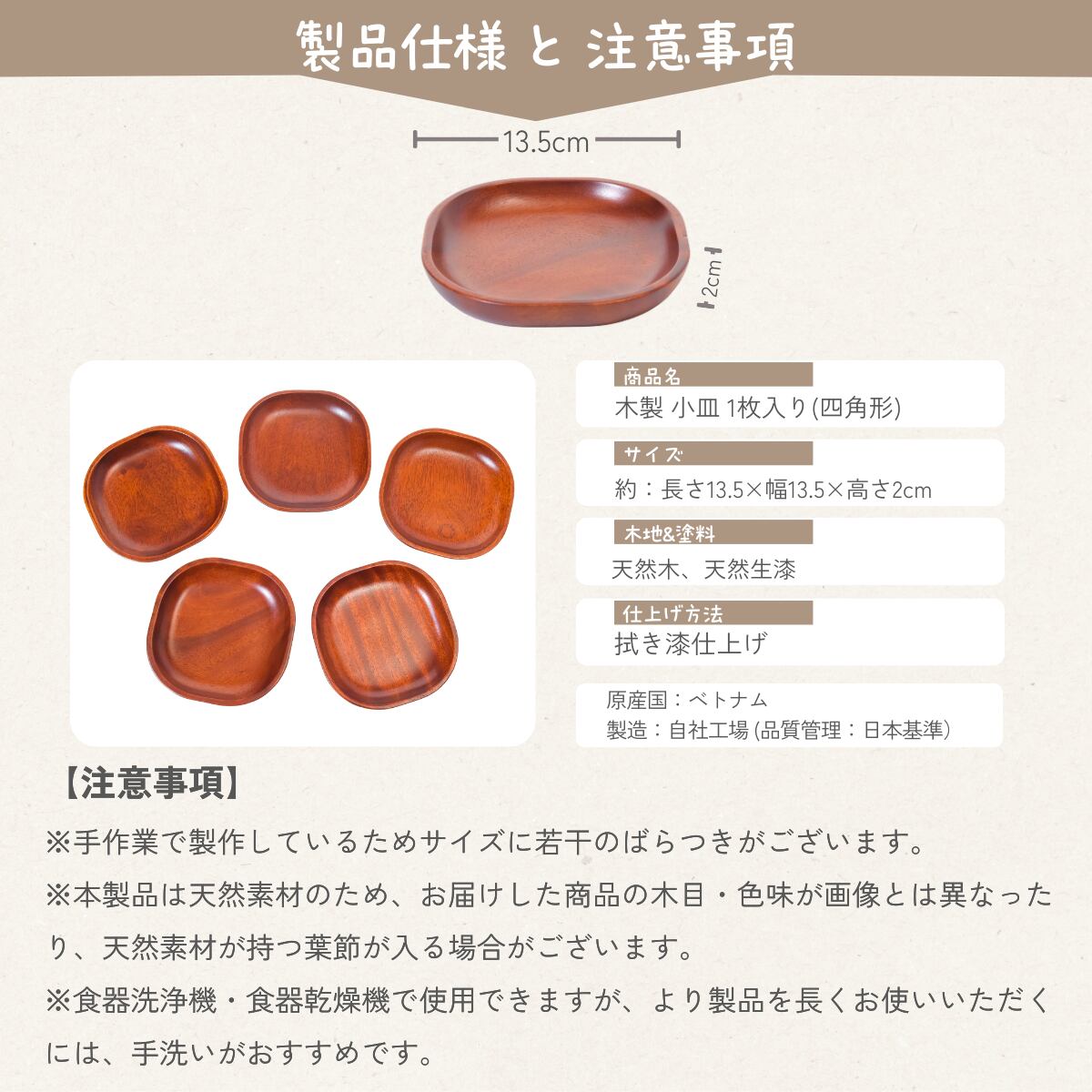 【※注意事項】 ●手作業で製作しているためサイズに若干のばらつきがございます。 ●本製品は天然素材のため、お届けした商品の木目・色味が画像とは異なったり、天然素材が持つ葉節が入る場合がございます。 ●天然木は元来水分を保湿しております。そのため、どの商品でもご購入先の土地環境や商品設置の場所等で木材に動きが生じる事がございます。その旨予めご了承ください。