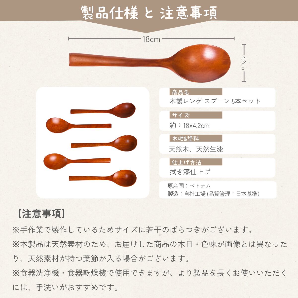 [徳成] レンゲ スプーン(木製漆塗り/18cm/細柄型)5本セット|家族の食卓や来客時にもなじむやさしい木のスプーンセット TAA-505 [食品衛生法適合品]